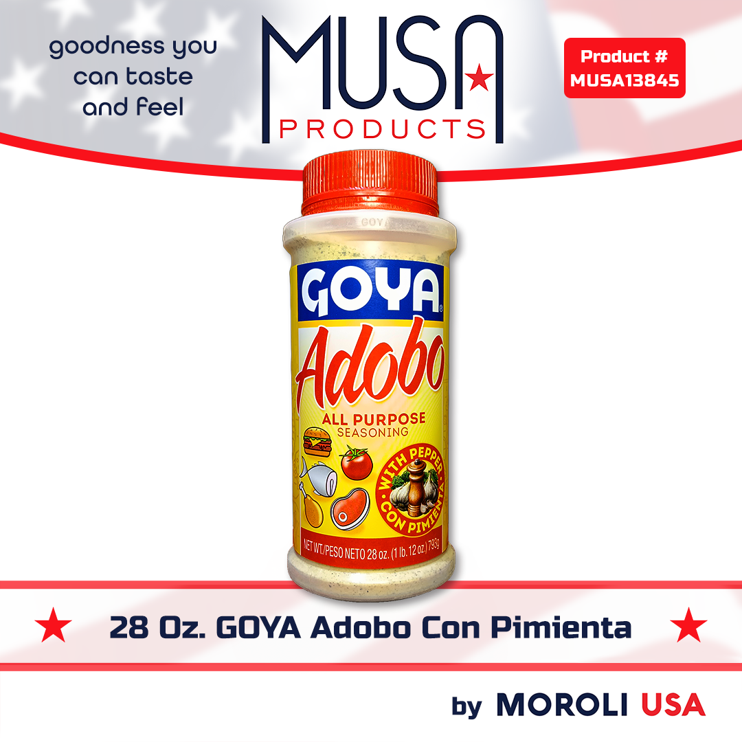 Sale 28 OZ. Goya ADOBO con PIMIENTA (Red Cap)$7.45 Original price was: $7.45.$6.90Current price is: $6.90. 28 OZ. Goya ADOBO con PIMIENTA (Red Cap) quantity Add to cart Category: OTHER PRODUCTS Reviews (0) Reviews There are no reviews yet. Be the first to review “28 OZ. Goya ADOBO con PIMIENTA (Red Cap)” Cancel replyYour email address will not be published. Required fields are marked *Your rating * Rate… Perfect Good Average Not that bad Very poor Your review *Name * Email * Save my name, email, and website in this browser for the next time I comment. Related products SaleOTHER PRODUCTS48 OZ Kraft GREY POUPON MUSTARD $29.99 Original price was: $29.99.$27.99Current price is: $27.99. Add to cart SaleOTHER PRODUCTS2/6 LB Falafelim FALAFEL BALLS BAGS $57.75 Original price was: $57.75.$55.30Current price is: $55.30. Add to cart SaleOTHER PRODUCTS114 OZ Chef’s Quality KETCHUP $10.12 Original price was: $10.12.$9.28Current price is: $9.28. Add to cart